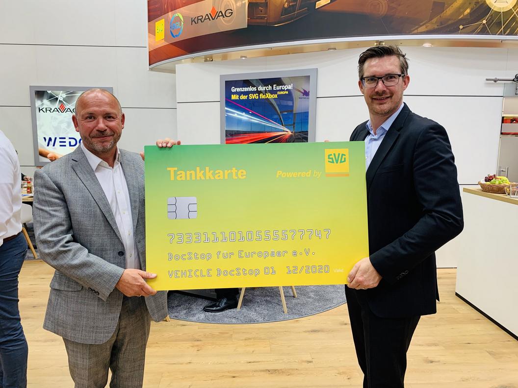 „Die SVG fördert die Arbeit von DocStop bereits seit zehn Jahren und ist damit einer der ersten Partner des Vereins überhaupt. Wir unterstützen dabei nicht nur finanziell, sondern auch ideell, beispielsweise indem wir in allen sicherheitsrelevanten SVG-Schulungen die Fahrer über DocStop informieren und so dabei helfen, das Netzwerk weiter auszubauen,“ so Marcel Frings. „Wir wissen, dass die Repräsentanten des Vereins viel in Europa unterwegs sind und dabei viel Grundlagenarbeit für DocStop betreiben. Mit der SVG Tankkarte sind sie nun auch bei Fahrten ins europäische Ausland bestens aufgestellt und können sich komplett auf den Ausbau des DocStop-Netzwerkes konzentrieren.“